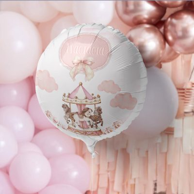 18″ Μπαλόνι Foil Tυπωμένο Ροζ Καρουζέλ Στρογγυλό