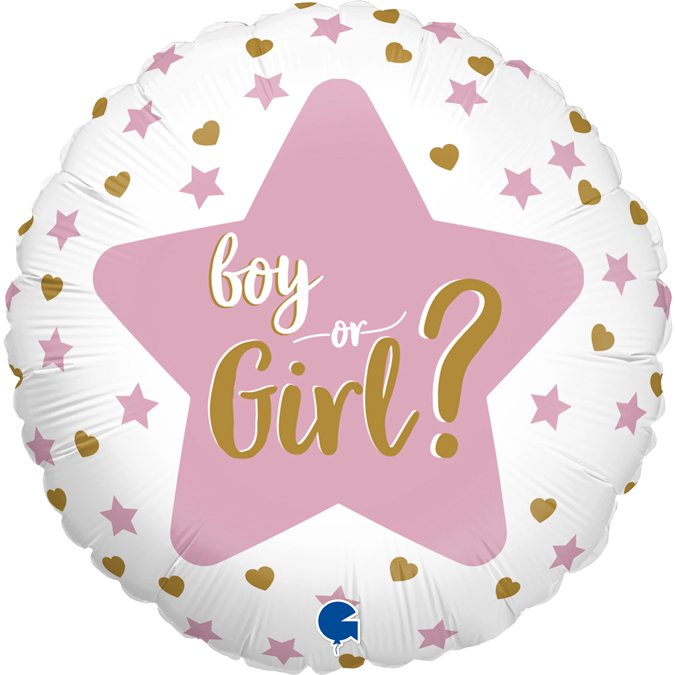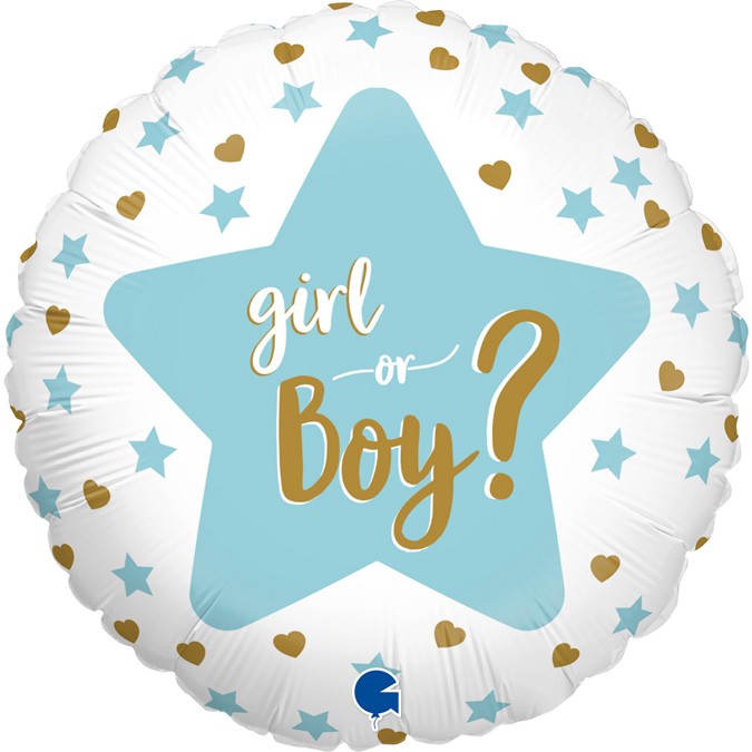 Στρογγυλό, foil μπαλόνι με αστεράκια “Boy or Girl?” για το Gender Reveal Party!