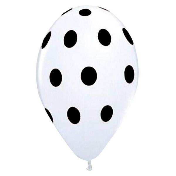 12″ Μπαλόνι άσπρο με μαύρο πουά. Δημιουργήστε μια ξεχωριστή διακόσμηση πάρτυ, βάπτισης ή για όποια άλλη περίσταση επιθυμείτε!