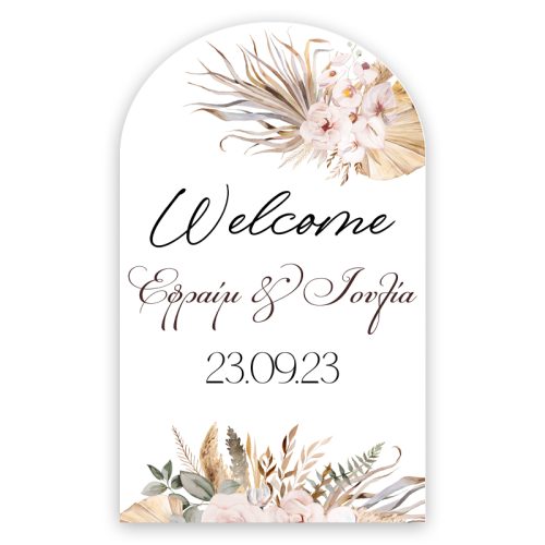 Ξύλινη οβάλ Πινακίδα Γάμου – Μπόχο Φλοράλ