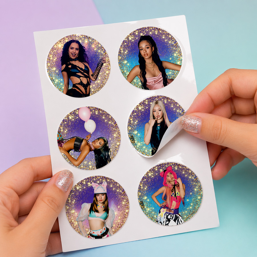 Στρογγυλά αυτοκόλλητα με σχέδιο K-Pop Demon Hunters, για να διακοσμήσεις τα αντικείμενα του πάρτι ή να τα δώσεις ως ενθύμιο δώρο στους μικρούς καλεσμένους!