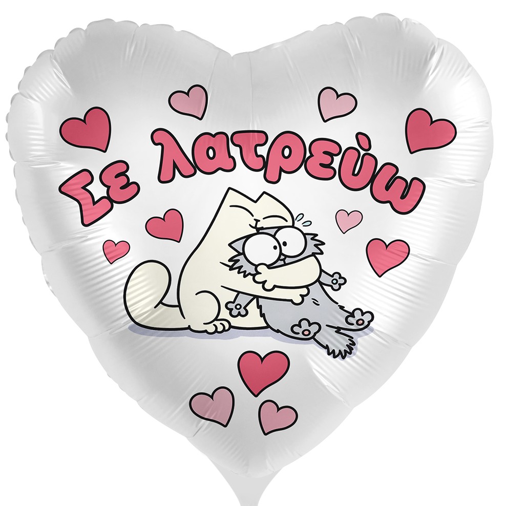 Μπαλόνι σε σχήμα καρδιάς με ελληνικό μήνυμα «Σε λατρεύω» και σχέδιο ερωτευμένα γατάκια.