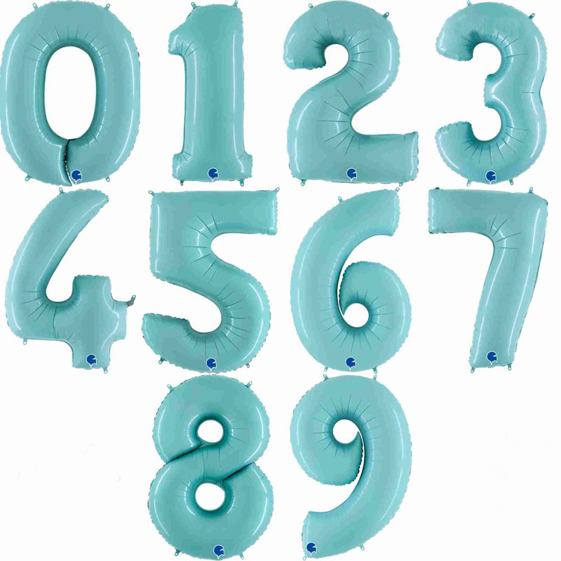 Μπαλόνια Αριθμοί Τιρκουάζ με γκλίτερ 100 cm – 40″