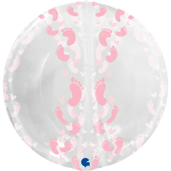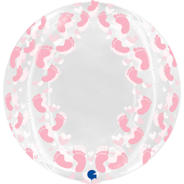 Εντυπωσιακό ολοστρόγγυλο Globe 4D μπαλόνι διάφανο με σχέδιο ροζ πατουσάκια, για να διακοσμήσετε το baby shower party, το gender reveal ή για δώρο στο νεογέννητο μωράκι!