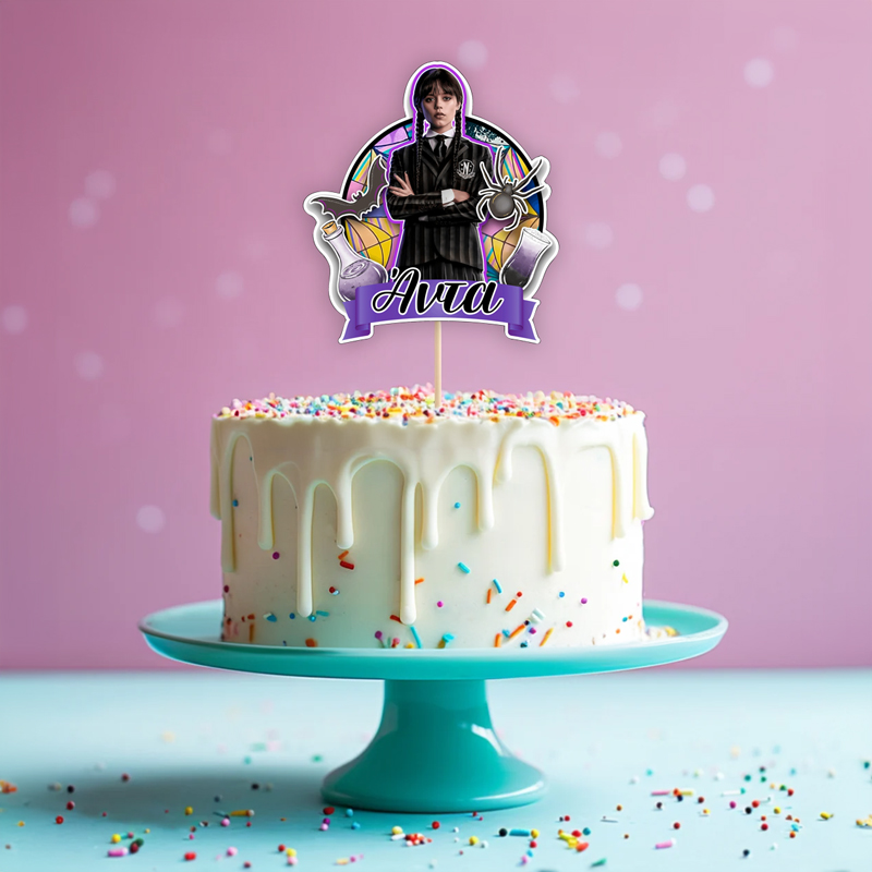 Διακοσμητικό Topper Τούρτας Wednesday για να στολίσετε την τούρτα, με το όνομα της επιλογής σας τυπωμένο επάνω και να εντυπωσιάσετε!