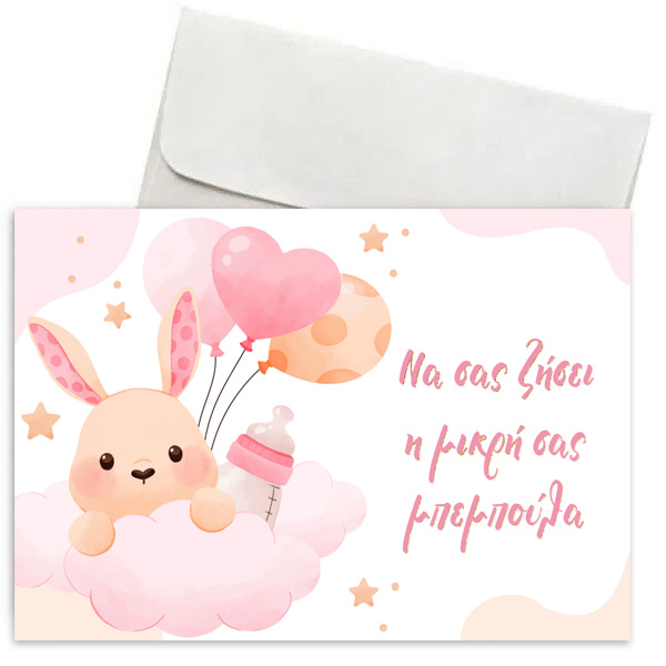Αρχική » Δώρα » Ευχετήριες Κάρτες » Κάρτες με Ευχές για Βάπτιση » Ευχετήρια Κάρτα Γέννησης – Κουνελάκι