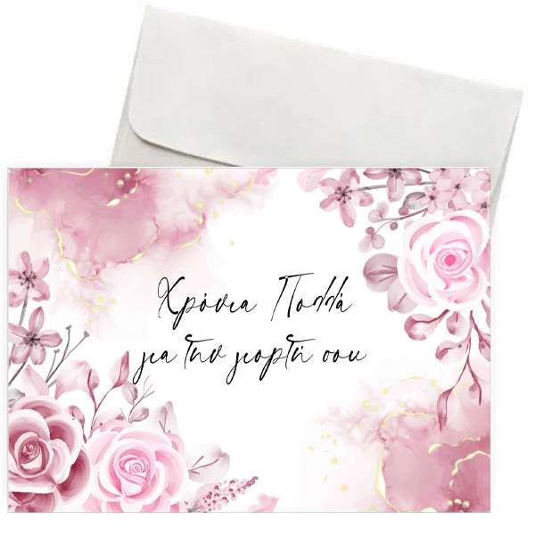 Πρωτότυπη ευχετήρια κάρτα με λουλούδια σε ροζ απόχρωση, για να χαρίσεις και να ευχηθείς με τον πιο εντυπωσιακό τρόπο για την ονομαστική εορτή του αγαπημένου σου προσώπου!