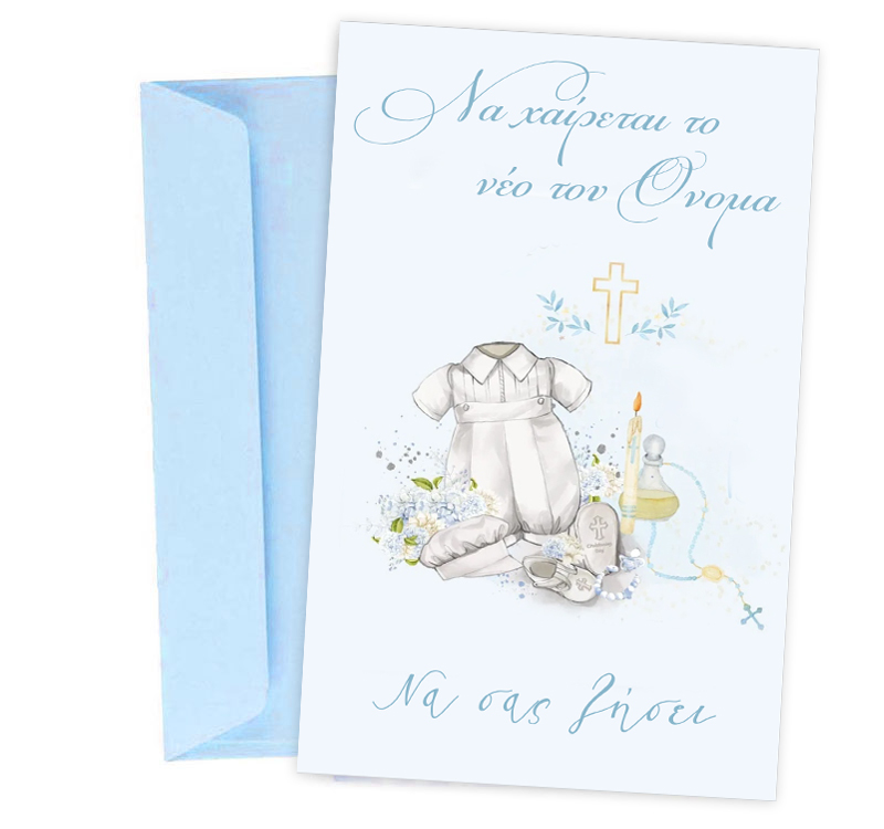 Ευχετήρια Κάρτα Βάπτισης – σετ Νονού