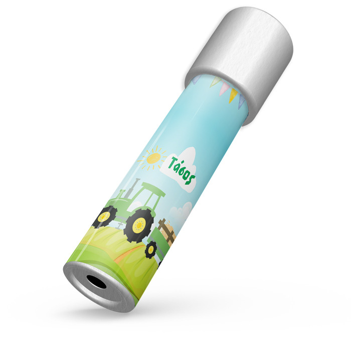 Καλειδοσκόπιο με θέμα Τρακτέρ, που το περιστρέφεις και αποκαλύπτονται αμέτρητα σχέδια! Ιδανικό για δώρο στους μικρούς καλεσμένους του πάρτυ, που θα τους μαγνητίσει και θα τους οδηγήσει σε ένα ατελείωτο παιχνίδι με τις αντανακλάσεις του φωτός.