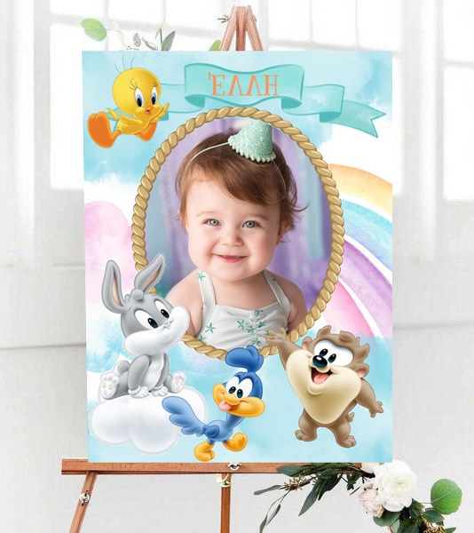 Διακοσμήστε το χώρο της βάπτισης και υποδεχθείτε τους καλεσμένους σας, με καμβά με τη φωτογραφία του μωρού σας και θέμα Baby Looney Tunes!