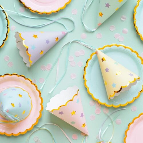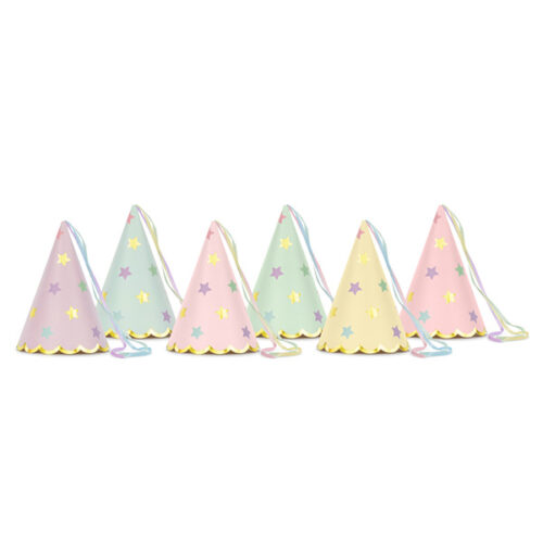 Βάλτε σε γιορτινή διάθεση τους καλεσμένους σας με τα καπέλα για πάρτυ σε 6 χρώματα με πολύχρωμα και χρυσά μεταλλικά αστέρια και σατέν κορδέλες!