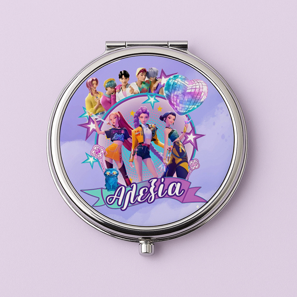 Καθρεφτάκι K-Pop Demon Hunters Ασημί Στρογγυλό για να το κάνεις δώρο στους καλεσμένους του πάρτυ σου και να ξεχωρίσεις!
