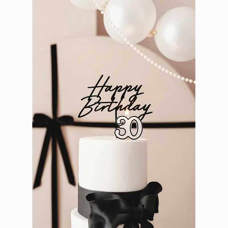Κεράκι “30” κρεμ με μαύρο περίγραμμα για μια κομψή διακόσμηση για την τούρτα γενεθλίων στα 30α γενέθλια!