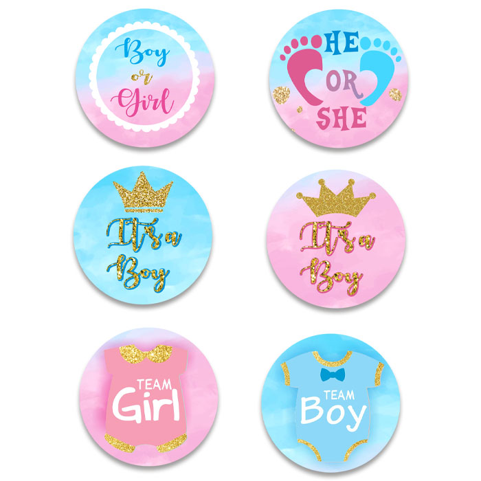 Κονκάρδες με θέμα Gender Reveal, για να φορούν οι καλεσμένοι του πάρτι αποκάλυψης του φύλου για το μωράκι που έρχεται!