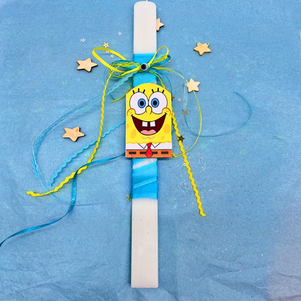Ο αγαπημένος Μπομπ Σφουγγαράκης σε μία μοναδική πασχαλινή λαμπάδα με υπέροχα υλικά και κορδέλες!