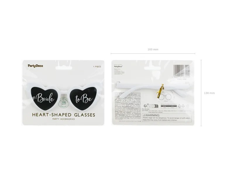 Γυαλιά πάρτι σε σχήμα καρδιάς με την επιγραφή ‘’Bride To Be”, ιδανικά για bachelorette party, bridal shower και κάθε προγαμιαία γιορτή. Με μοντέρνο άσπρο σχεδιασμό και εντυπωσιακό σχήμα καρδιάς, αποτελούν το τέλειο αξεσουάρ για τη νύφη και την παρέα της.