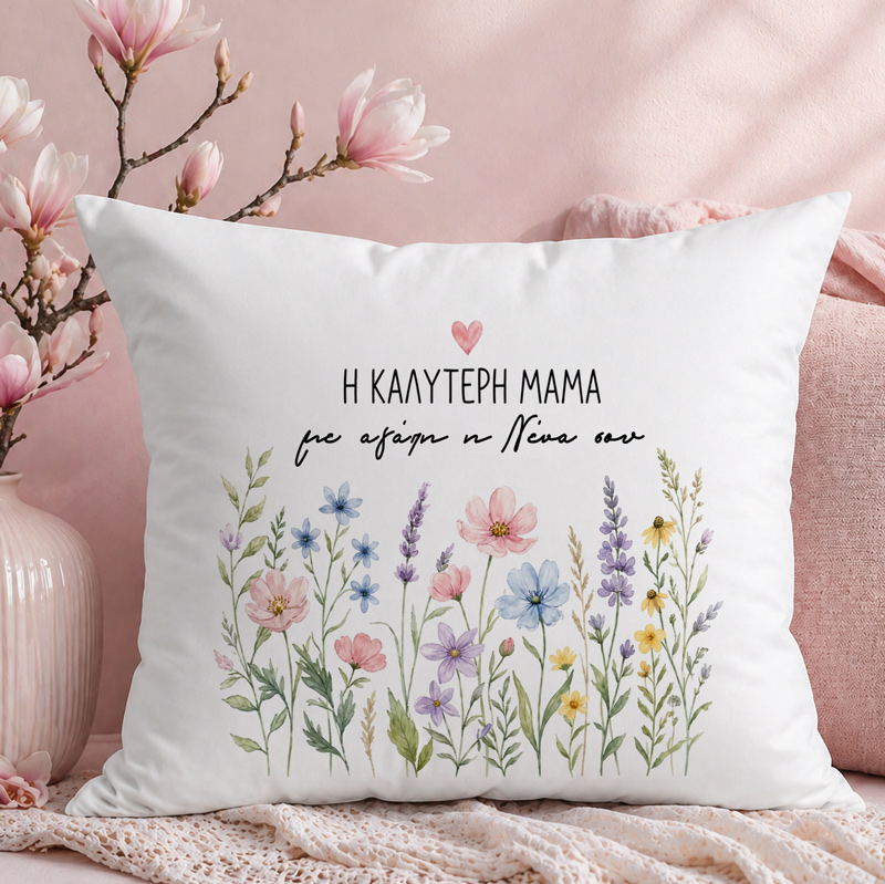 Μαξιλάρι “Η Καλύτερη Μαμά” με σχέδιο λουλούδια για να χαρίσεις στη μαμά σου! Κάνε της ένα πρωτότυπο δώρο και δείξε της πόσα σημαίνει για σένα.