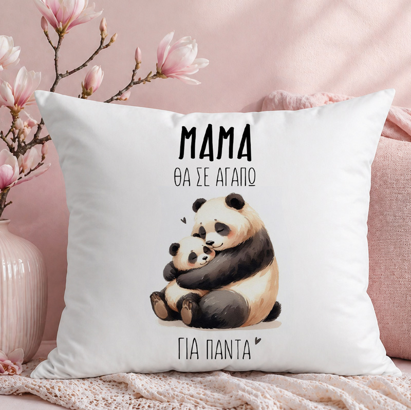 Μαξιλάρι για μαμά με γλυκό σχέδιο panda και τρυφερό μήνυμα αγάπης, ιδανικό για να της δείξεις πόσο ξεχωριστή είναι για σένα. Ένα όμορφο και συναισθηματικό δώρο που θα της θυμίζει καθημερινά την αγάπη σου.