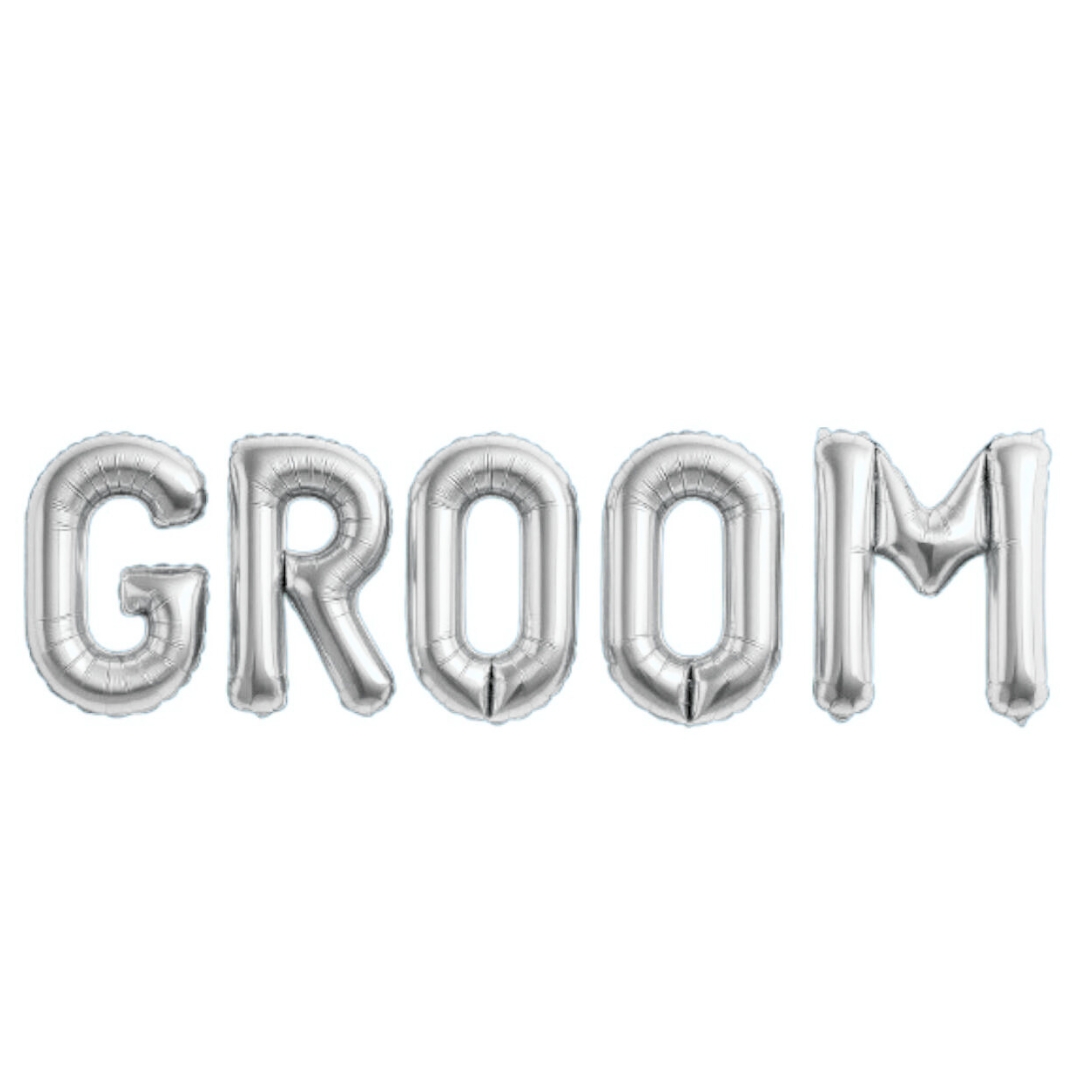 Foil μπαλόνια γράμματα με τη λέξη GROOM, για τη διακόσμηση του Bachelor Πάρτι ή για το δωμάτιο ετοιμασίας του γαμπρού!