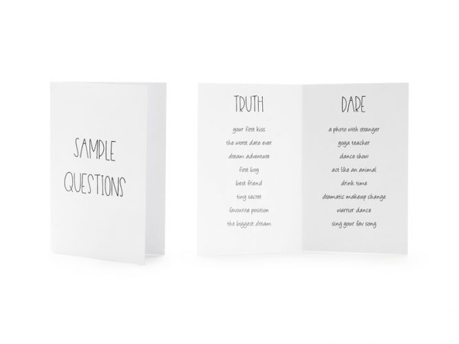 Αρχική » Στολισμός Γάμου » Bachelorette Party / Bachelor Party Νύφης » Αξεσουάρ για Bachelor/ Bachelorette » Παιχνίδι για Bachelor – Θάρρος ή Αλήθεια