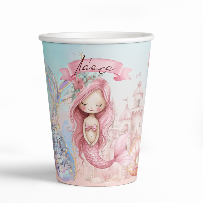 Ποτηράκια με το όνομα του μικρού σας και θέμα Ροζ Γοργόνα (3 τεμ), για να κεράσετε τους καλεσμένους σας στο τραπέζι του πάρτυ ή της βάπτισης!