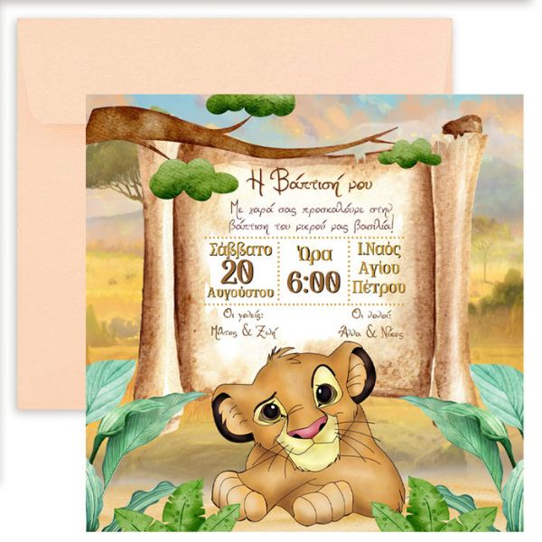 Κατηγορίες: Lion King Βάπτιση, Βάπτιση με Θέμα, Είδη Βάπτισης, Προσκλήσεις Βάπτισης - Προσκλητήρια