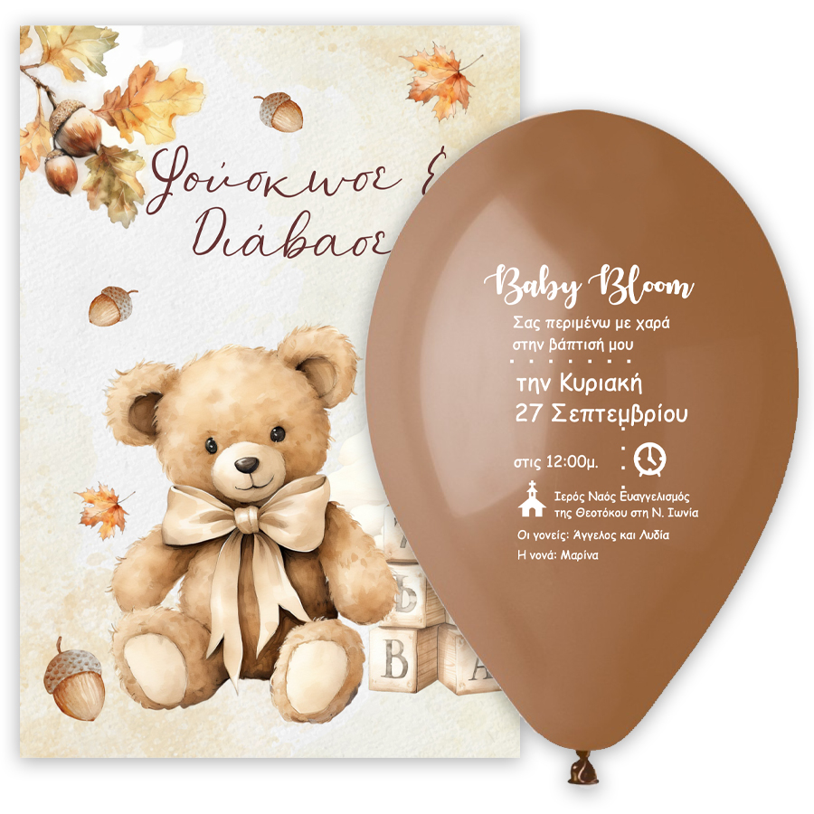 Αρχική » Είδη Βάπτισης » Βάπτιση με Θέμα » Φθινοπωρινή Βάπτιση » Προσκλητήριο Φθινοπωρινής Βάπτισης Μπαλόνι – Αρκουδάκι