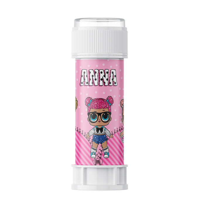 Προσωποποιημένες σαπουνόφουσκες με χάρτινο περιτύλιγμα LOL Surprise, για να χαρίσετε ως δωράκι στα παιδάκια του πάρτυ.