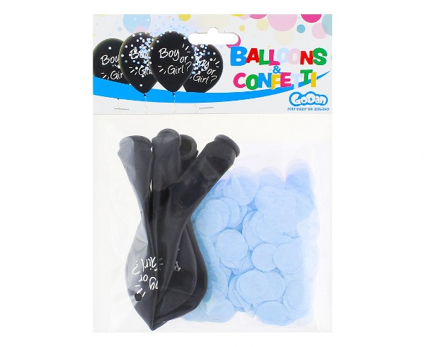Σετ μαύρα μπαλόνια Boy or Girl με γαλάζιο κομφετί (4 τεμ)