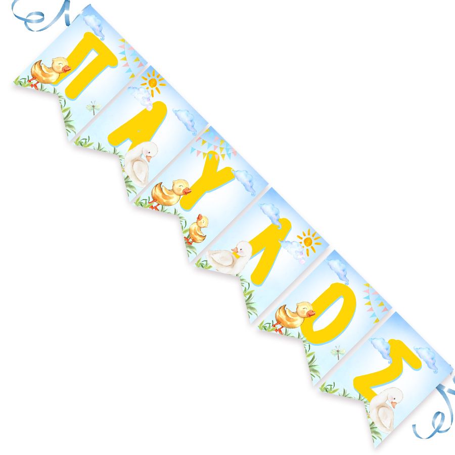Σημαιάκια με το όνομα του παιδιού και θέμα χαριτωμένα παπάκια και χηνάκια!