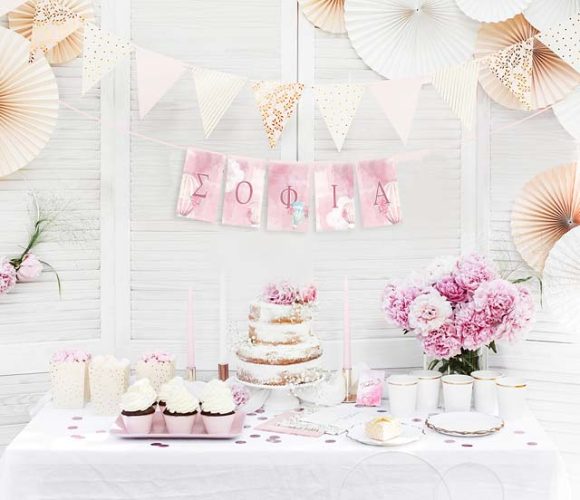 - Σημαιάκια με μύτη (ουρά χελιδονιού) από χαρτί illustration 210 gr και κορδέλα οργάντζα