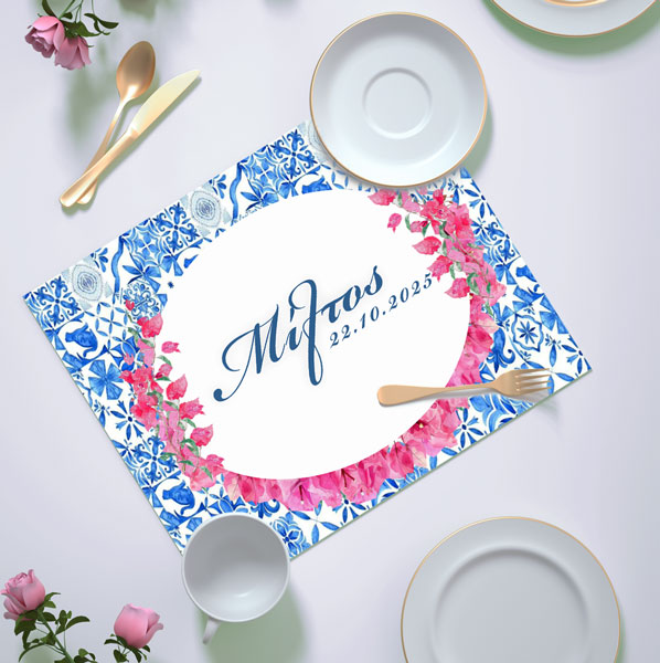 Προσωποποιημένο σουπλά τραπεζιού με θέμα Βουκαμβίλια, για να διακοσμήσετε το τραπέζι της βάπτισης ή του πάρτυ!