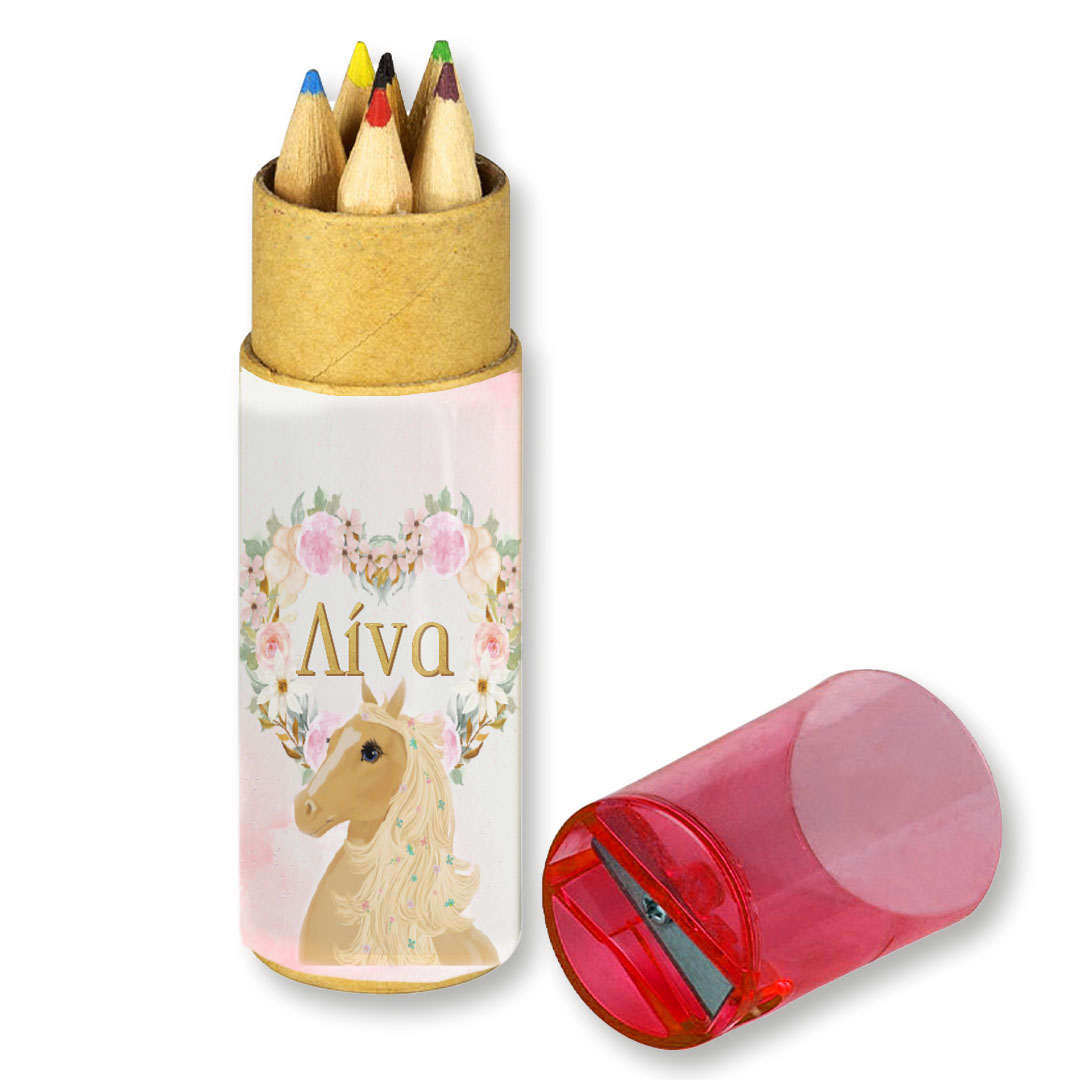 Χαρίστε στους μικρούς καλεσμένους του πάρτι, ξυλομπογιές με θέμα Άλογο. Μπορεί να τυπωθεί επάνω το όνομα του παιδιού.