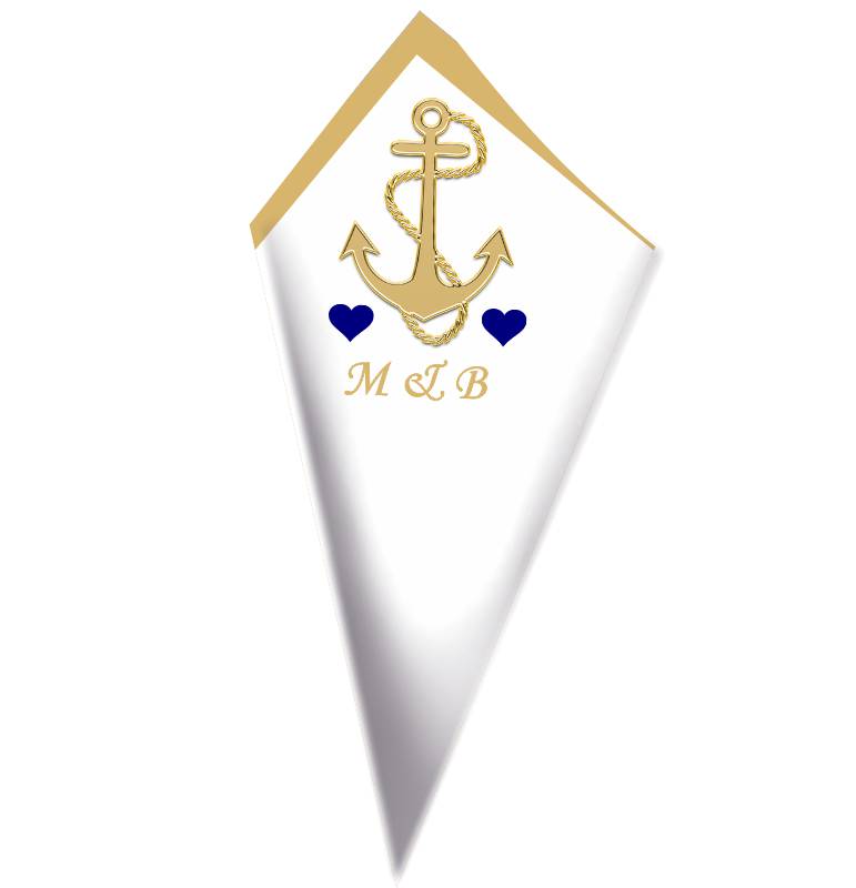 Χωνάκια ρυζιού με τα αρχικά των νεόνυμφων και σχέδιο ναυτικό. Μοιράστε τα στους καλεσμένους σας για να σας πετάξουν το ρύζι στο γάμο!